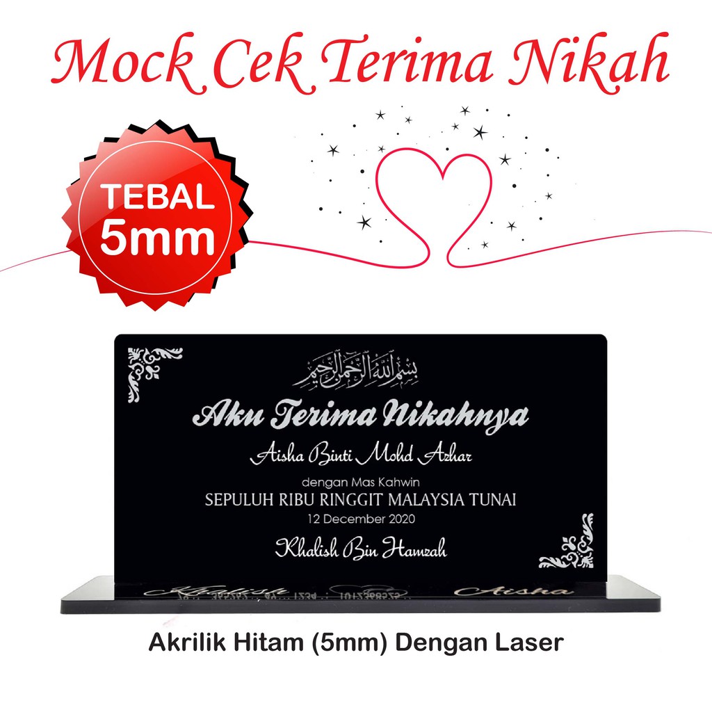 Replika Cek Acrylic Replika Perkahwinan Aku Terima Nikahnyn Mock Cek Terima Nikahnya Mockup Cek Shopee Malaysia